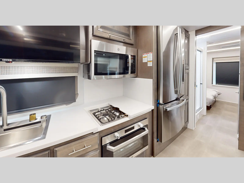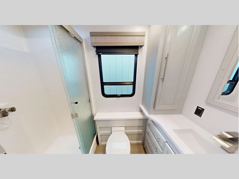Travel with the Arctic package and go off the grid with the solar panel. The MORryde 1.5" tubular steel chassis up-fit will hold up through every adventure you throw its way. Your trips will be truly relaxing with Thomas Payne furniture to sit on, a residential stainless steel appliance package to prepare home cooked meals, and a Tilt-A-Bed for a good night's rest each night.