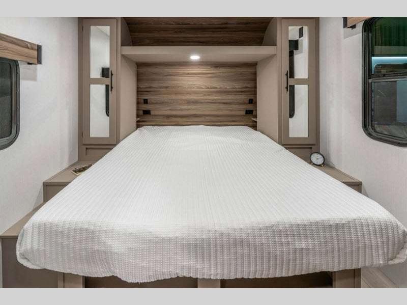 Sleeps 3 Slides 1 Length 24 ft 1 in Ext Width 8 ft Ext Height 10 ft 10 in Int Height 6 ft 6 in Interior Color Chocolate, Mink Hitch Weight 490 lbs GVWR 6500 lbs Dry Weight 4750 lbs Cargo Capacity 1750 lbs Fresh Water Capacity 45 gals Grey Water Capacity 32 gals Black Water Capacity 32 gals Tire Size 15" Furnace BTU 30000 btu Available Beds Queen Refrigerator Type 12V Refrigerator Size 10 cu ft Cooktop Burners 3 Shower Size 34" X 34" Number of Awnings 1 Axle Weight 4260 lbs LP Tank Capacity 20 lbs Water Heater Type Tankless AC BTU 13500 btu Cargo Deck Size 0 ft Awning Info 16' Power w/LED Lighting Axle Count 2 Number of LP Tanks 2 Shower Type Radius Electrical Service 30 amp Similar Floorplans