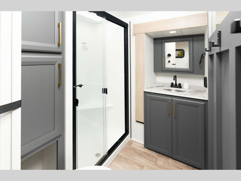 Sleeps 2 Slides 2 Length 31 ft Ext Width 8 ft Ext Height 12 ft 11 in Interior Color Mink Hitch Weight 1410 lbs GVWR 11500 lbs Dry Weight 8830 lbs Cargo Capacity 2670 lbs Fresh Water Capacity 76 gals Grey Water Capacity 50 gals Black Water Capacity 50 gals Tire Size 16" Furnace BTU 35000 btu Available Beds King Refrigerator Type French Door 12V Refrigerator Size 10 cu ft Cooktop Burners 3 Shower Size 42" x 30" Number of Awnings 1 Axle Weight 7420 lbs LP Tank Capacity 30 lbs Water Heater Type On Demand Tankless AC BTU 27000 btu TV Info LR 43" Smart LED TV Awning Info 16' Power w/LED Light Strip Axle Count 2 Washer/Dryer Available Yes Number of LP Tanks 2 Shower Type Shower w/Seat Electrical Service 50 amp Similar Floorplans