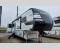 The rear living area of this fifth wheel will be the talk of the campground! It features a rear entertainment center with a 65" smart LED TV and a 48" fireplace, as well as opposing hide-a-bed sofa slides and theater seating with USB charging. The kitchen has everything you need to prepare your best meals including a 24" oven with the four burner range and booth seating with two chairs on the other side to enjoy your meals and play card games. Two can get ready at once in the full bathroom with the dual sink vanity and rinse the sand out of your hair with the 48" x 30" residential shower with a seat. The front private bedroom has a king bed slide across from a dresser and a front wardrobe with washer and dryer prep. There is even an outside griddle to cook some pancakes for a sunrise breakfast!